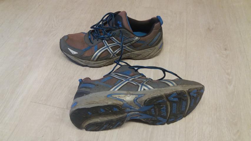 Gekauft bei Deichmann , es ist ein Asics T51 RQ, für 54,90 Euro am 24.4.2016. Der Schuh kommt überall durch auf steiniger Strecke über die Wiese oder den erdigen Weg hinauf. Guter Trainingsschuh, endlich mal in gedeckten Farben. Am 09.1.2022 nur bei ganz schlechtem Wetter rausgeholt, weil nun doch schon die Decksohle abgelaufen ist. Ein Ärgernis: die Schnürbänder gehen fast jedesmal auf, man verliert Zeit und muss eine Doppelschleife machen. Ich wäre eigentlich 10 sek schneller :-). Bishe ca 1200 km | |