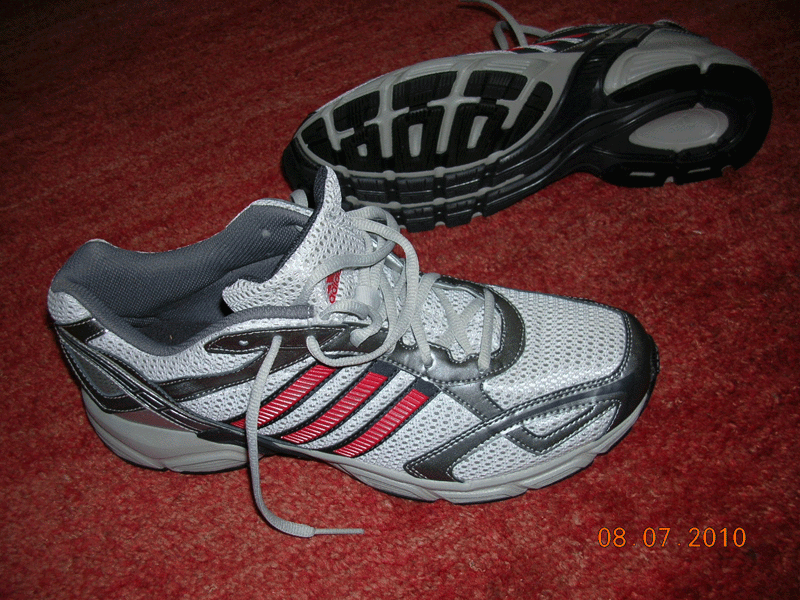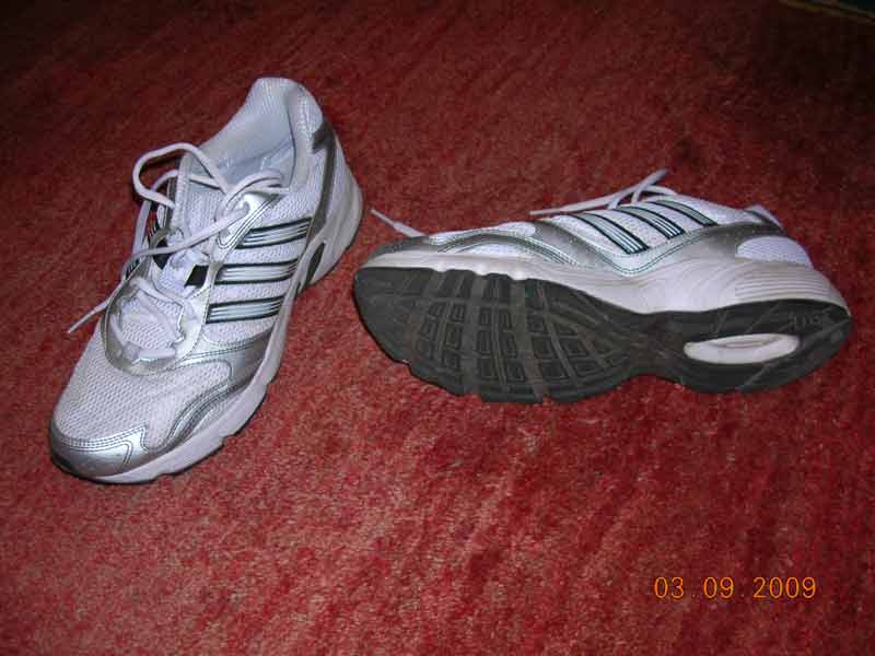 Hier sehen Sie Adidas Vanquish 2 von Netto für 29,99 Euro. Gekauft im April 2009, sind bequem und haben sogar die richtige Weite. Warum also nicht im Fachmarkt Netto kaufen. Außerdem kann man in denen schön zur karierten Halblanghose posen. Laufen muß ich mit denen erst probieren. Hielten aber nicht sehr lange: ca 800 km und 2 Jahre getragen. | |
