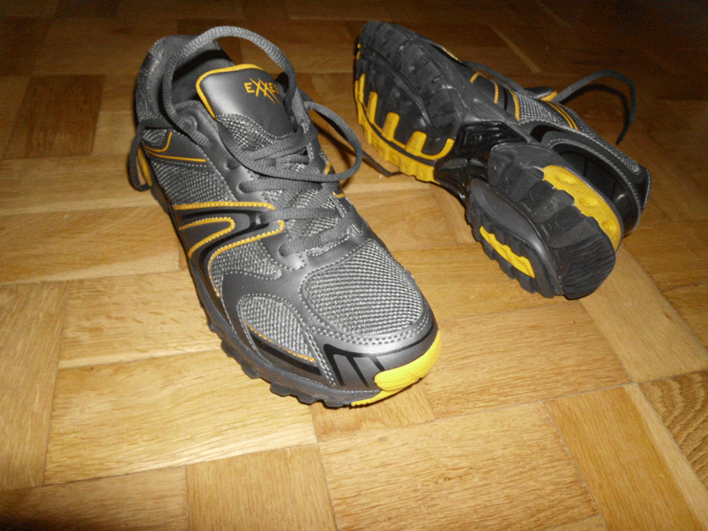 Das Kaufland bietet einiges, leider nicht in allen Größen. Da ich im Winter leicht ins Rutschen komme, probiere ich nicht lange und kaufe nach Name (Trail-Schuhe) und Preis (14,99 Euro). Leider sind sie etwas zu klein, eine Öse löste sich auch schon nach 3 Monaten. Bei Berglaufen drücken sie zu sehr, aber normale Läufe absolvieren sie gut. Nach 300 km läuft sich aber schon sehr hinten die Sohle ab. Eingelaufen am 19.1.2013. Waren immer zu klein und drückten, liefen sich nie gut. Vielleicht 800 km in 2 Jahren, dann abgeworfen. | |