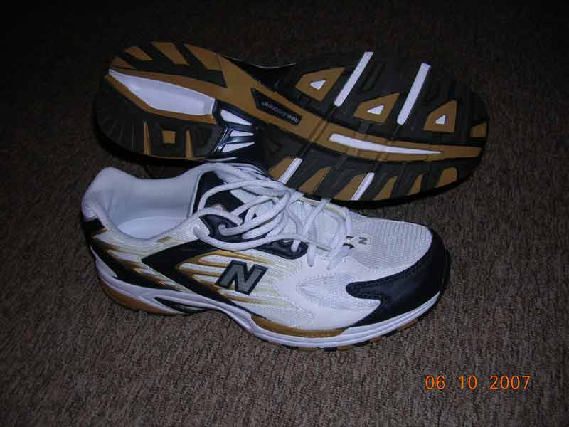 In Erwartung "Schlechterer Zeiten" nochmal vor der Herbstkälte zur GaleriaKaufhof gedüst und zwichen einem Reebok und einem New Balance hin und her entschieden. Es wurde schließlich der neu klingende Engländer, der paßte besser und sah irgendwie stattlicher und stabiler aus. Der sitzt wirklich gut (trotz breiter Füße) hat eine stark profilierte Sohle (könnte was für den Kernberg-Lauf sein) und macht auch langsame Bewegungen mit. Sieht ein bißchen auffällig blau/ weiß aus, aber vielleicht kommt Matrosen-Look wieder in Mode. Kosten 50 Euro bei Kaufhof. In Dienst 08.10.2007. Liefen sich gut, waren aber etwas schwer, ca 1000 km in 2,5 Jahren. | |