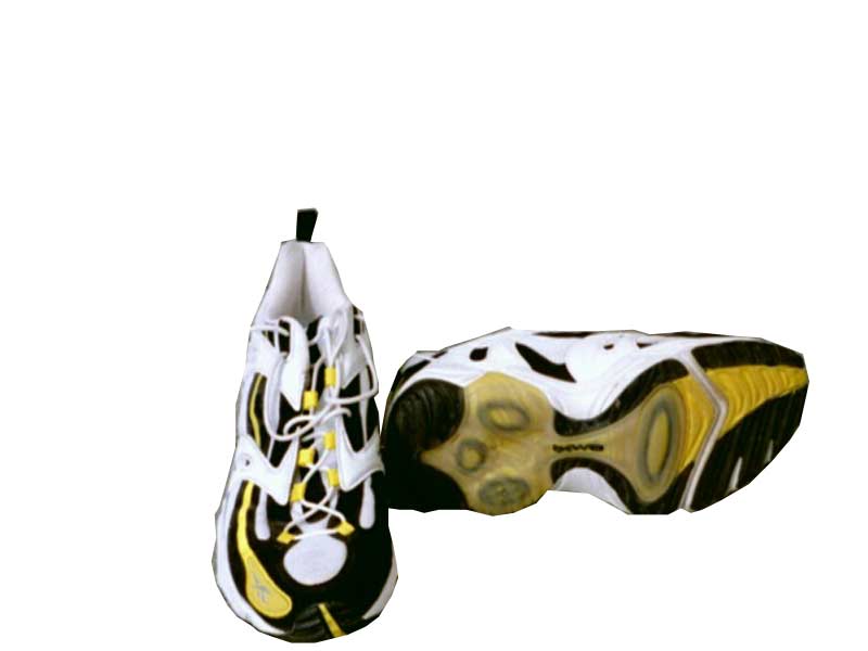 Der Durchmarsch der DMX Generation von Reebok. Die waren ja so toll. Man fühlte sich gleich um Klassen besser beim Laufen Ganz neue Sohlentechnik und das Torsionskonzept von Adidas durch Luftkissen erweitert. Man schwebte über die Laufbahn. Da störten auch die blutigen Zehen, die ich mir anfangs holte nicht. Besonders im Gelände griffen die Schuhe gut auch bei rutschigem Untergrund. Leider ließen die schmerzenden Zehen auch später nicht nach - also eher nichts für lange Läufe. Außerdem lief sich auch bald die bunte Sohle ab und eine hohle Blase kam zum Vorschein. Da ließ sich nichts mehr flicken. Ich mußte mich nach anderen Spitzenschuhen (mit der alten Technologie) umsehen. Preis (auf die Hälfte reduziert) etwa 80 DM, Haltbarkeit 9 Monate , ca. 700 km.  |