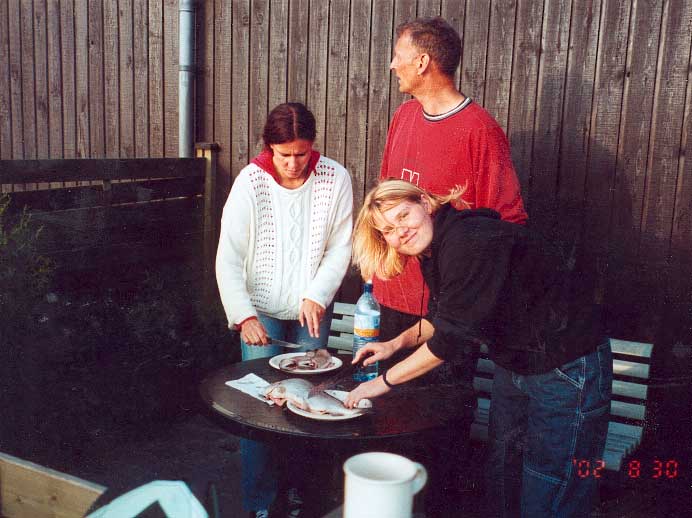| Im Anschluß daran Fisch bei Kerzenschein mit Pellkartoffeln und Wein oder Bier verzehren -